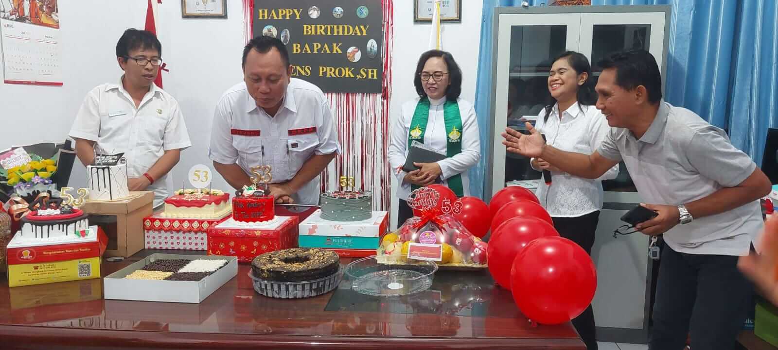 Ketika akan memasuki ruangan kerjanya, Tampak ruangan begitu gelap gulita, “Kyapa ini ruangan gelap?” Tanya Stevens, Dan seketika itu dia kemudian tampak kaget ketika lampu dinyalakan dan ruangan kerjanya dipenuhi oleh banyak orang, Sontak lagu Happy Birthday terdengar riuh di ruangan kerja Kadis, Kue Ulang Tahun yang begitu banyak menghiasi meja kerja, Sementara itu dekorasi Ulang Tahun tampak mendominasi ruang kerja Kepala Dinas