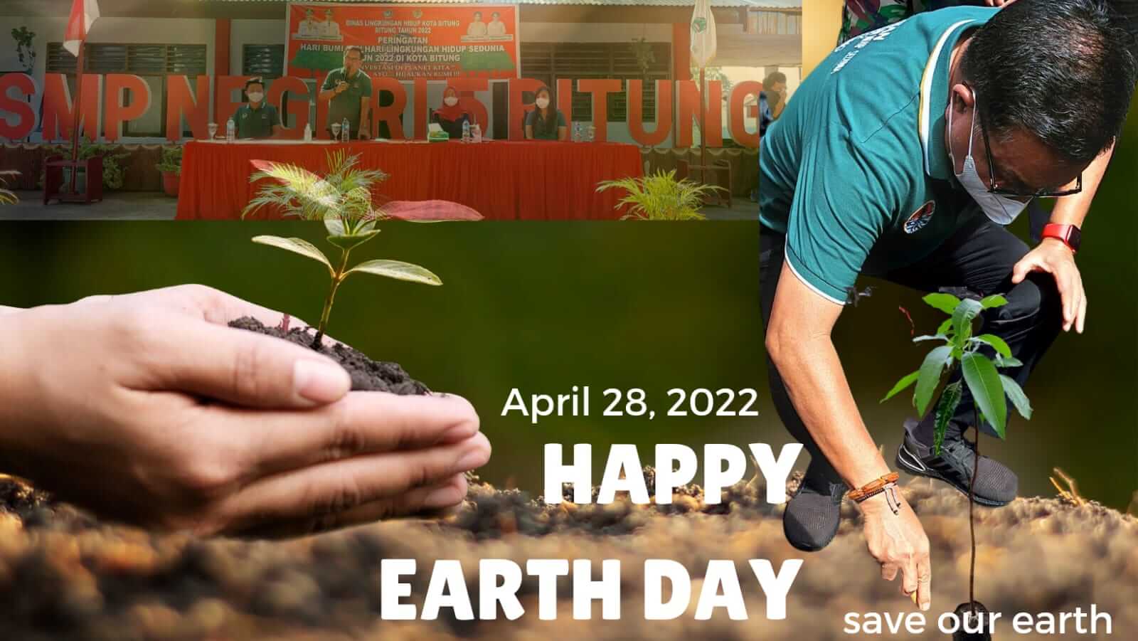 Pemerintah Kota Bitung lewat Dinas Lingkungan Hidup merayakan peringatan Hari Bumi, yang dilaksanakan pada Kamis 28 April 2022, bertempat di SMP Negeri 5 Bitung.
