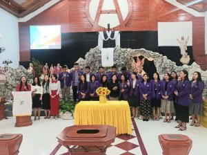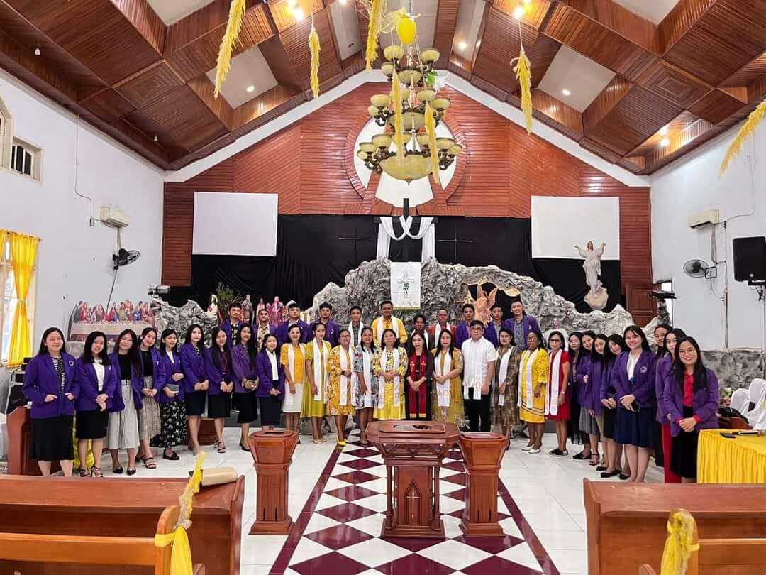 Mahasiswa yang berjumlah 26 ini tampak hadir di gedung gereja dengan memakai jas almamater yang berwarna Ungu