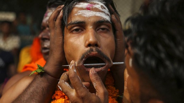Bukan hanya di Indonesia, India juga memiliki tradisi menusukkan besi ke pipi hingga tembus layaknya tatung lho. Penasaran seperti apa? Begini potretnya