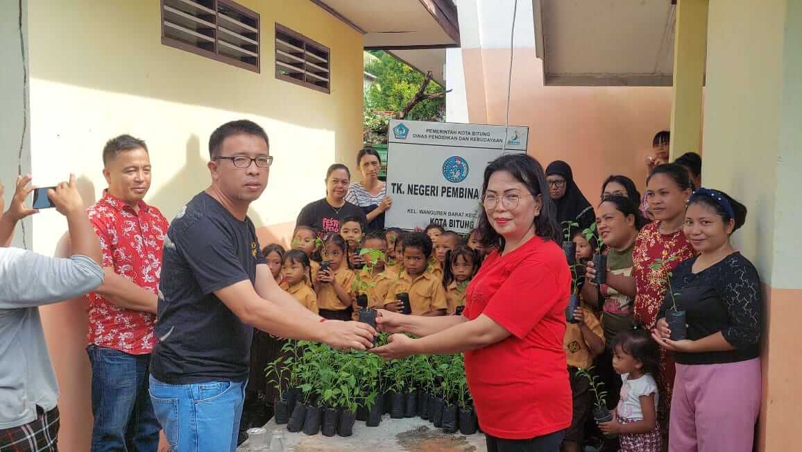 Jumat 12 Januari 2024, Dinas Ketahanan Pangan dan Pertanian yang diwakili oleh Kabid Ketahanan Pangan Heince Lolowang membawa bantuan bibit cabe untuk ditanam di Pekarangan sekolah